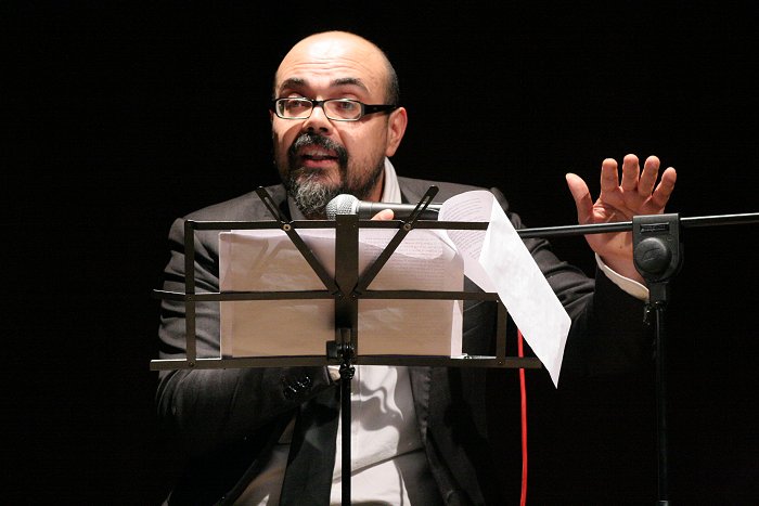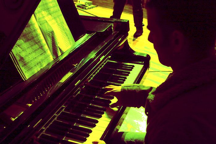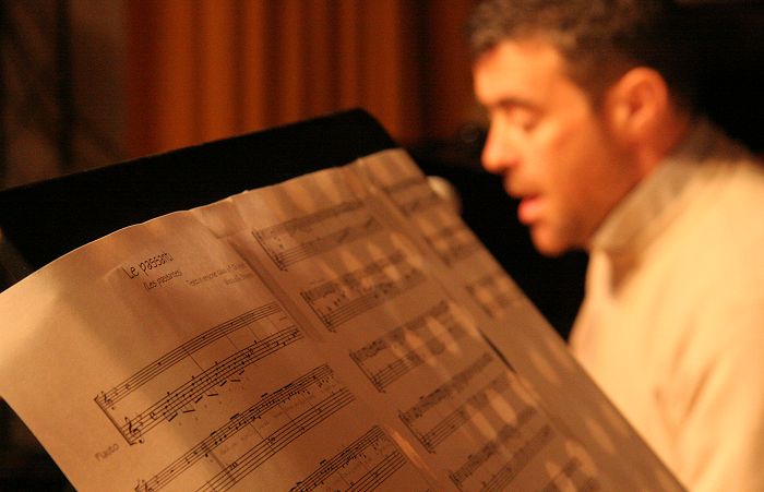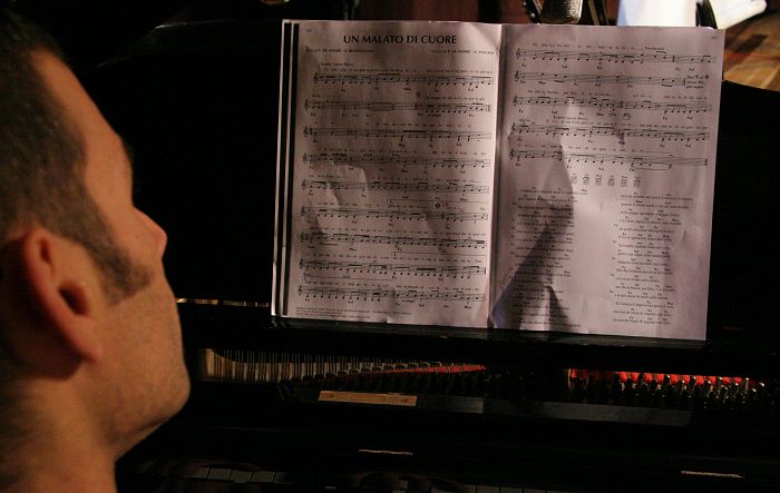 16 gennaio > commento di Roberto Caetani Quando Franco mi ha consegnato il testo di Mauro Covacich, già alla prima lettura mi sono subito reso conto che non sarebbe stato facile suonare su quei versi…non mi sbagliavo! Ho comunque accettato la “sfida” di confrontarmi con il tema dell’abbandono e della morte. Durante i giorni in cui abbiamo preparato il monologo con Titta, avvertivo che qualcosa si stava smuovendo: vecchie dinamiche, apparentemente elaborate, stavano tornando a galla. Ma, fare le prove è una cosa, “denudarsi” di fronte al pubblico è tutta un’altra storia! Sono salito sul palco, credendo di poter reggere l’emozione…fatte le prime note di “Nuovo Cinema Paradiso” ho sentito le lacrime in gola che volevano esplodere. Sono stati secondi interminabili di apnea…stavo per perdere la mia scommessa… Poi,
