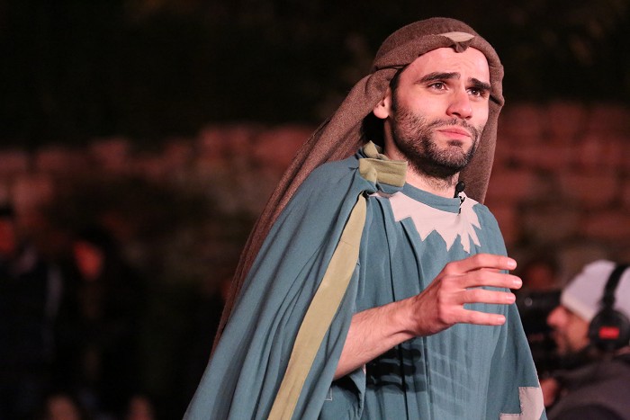 Giunse piangendo; e piangendo le andò incontro, ed entrambi, la vergine e Giovanni, si sedettero, piangendo insieme Gesù.