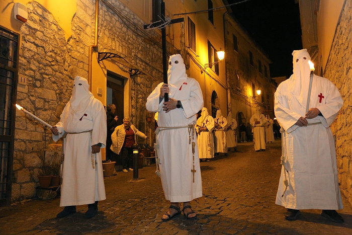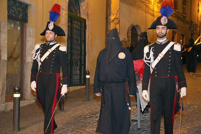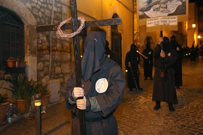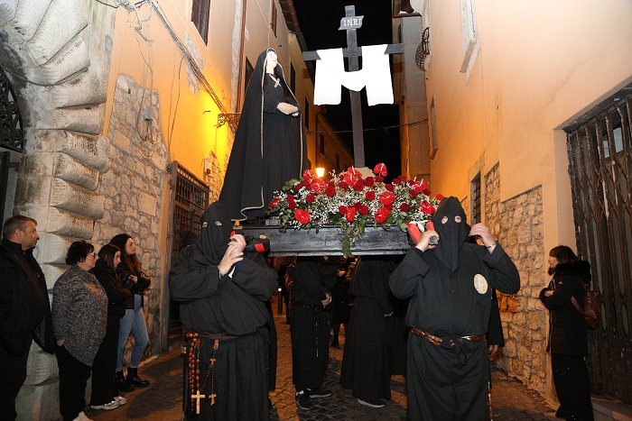 processione inizia con le Confraternite seguite dal Cristo morto e dalla Madonna dell’Addolorata cui fa da corona il canto delle pie donne è quella liturgica ed è la più antica.