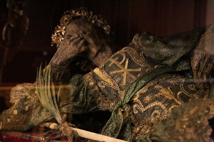 Il “corpo santo” di un giovane, estratto dalle catacombe romane del Campo Verano, fu donato alla cattedrale di Sezze nel 1723 dal card. Pietro Marcellino Corradini: questi, in una sua lettera ai canonici della cattedrale, sottolinea che «questo non è un Santo di nome battezzato, ma che col proprio nome, et ampolla del Suo sangue fu estratto dal […] Cemeterio», ma non indica quale; il vescovo diocesano mons. Gioacchino Maria Oldo, nella visita pastorale effettuata alla cattedrale di Sezze il 17 luglio 1743, specifica che il corpo «extractum […] fuit ex Cemeterio Ciriacae».