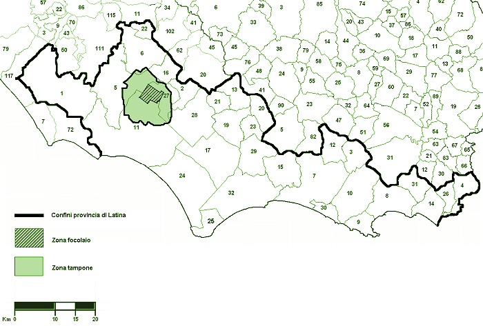 Dopo il monitoraggio la prima misura di prevenzione è stata la delimitazione di una zona focolaio nei Comuni di Cisterna di Latina, Latina e Sermoneta avente un raggio di un chilometro e una conseguente zona tampone, corrispondente ad una fascia di almeno cinque chilometri attorno alla zona focolaio, ricadente anche se solo parzialmente nei Comuni di Cisterna, Latina, Sermoneta, Sezze e Cori. Il territorio del Comune di Sezze per la verità è stato toccato solo marginalmente ed in misura trascurabile perché ricade solo per pochissimi ettari nella zona tampone, ma il fenomeno va comunque arginato per evitare nel prossimo futuro la diffusione della Diabrotica virgifera in tutta la maiscoltura regionale. Così la Regione Lazio dalla metà di Novembre sta inviando lettere di avviso ai produttori maidicoli della zona focolaio e della zona tampone con le misure da adottare e le sanzioni civili e penali per i trasgressori.