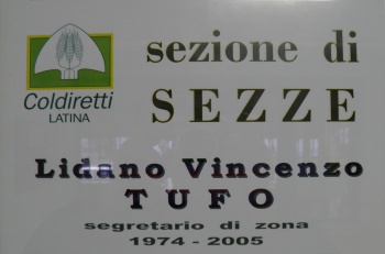 Lidano è stato segretario di zona oltre che della Sezione di Sezze, anche di quelle di Pontinia e di Sabaudia nonchè vice direttore della Federazione Coldiretti di Latina. In ognuno di noi è ancora vivo il suo ricordo e grande è ancora oggi il nostro dolore ed il rimpianto per la sua perdita, perché a Lidano volevamo veramente tutti bene. Ed è in omaggio alla sua memoria, per quello che ha saputo essere per noi e per la Coldiretti che abbiamo deciso di dedicargli questa Sezione, chiamandola a suo ricordo imperituro “Sezione Coldiretti Lidano Tufo di Sezze” e apponendovi la targa ricordo - Il Direttore Saverio Viola ha ricordato nel suo intervento come a sessanta anni dalla sua fondazione, la Coldiretti sia diventata la maggiore organizzazione professionale agricola, confortata dal sostegno dei cittadini consumatori, che ne riconoscono la giustezza delle rivendicazioni, prima fra tutte quella sull’etichettatura di origine degli alimenti. Questa legge, approvata recentemente dal Parlamento, costituisce una vittoria di Coldiretti contro i poteri forti dell’economia e permette di far conoscere ai consumatori la reale provenienza dei cibi che acquistano, eliminando di fatto la grande truffa sinora perpetrata a danno dell’agricoltura italiana e dei consumatori, con la quale si faceva passare per italiano ciò che di italiano non aveva neanche l’incarto. Alla fine dell’inaugurazione tutti i convenuti hanno potuto degustare un buffet a base di prodotti tipici, offerto dall’ Azienda agricola “Maina” di Wilma Lombardi, associata Coldiretti nel Mercato di Campagna Amica.