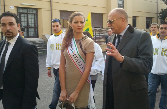 A mezzogiorno ecco finalmente Giusy Buscemi Miss Italia 2012, la nostra bellissima madrina, accolta dagli applausi e scortata da una schiera di telecamere e giornalisti.