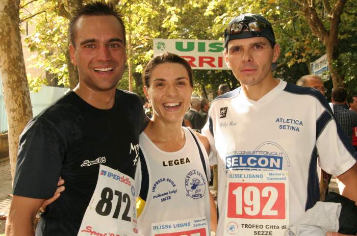 00:48:00.45 LEONCINI PATRIZIA, prime delle donne il Commento di Fratarcangeli Roberto La nostra città ha ospitato, domenica 16 ottobre, il Quarto Trofeo Città di Sezze, gara podistica di 11.000 km organizzata dall’Atletica Setina. La splendida giornata di sole ha visto schierati sulla linea di partenza ben 170 atleti provenienti da tutta la regione Lazio. La gara, partita alle 9:30 dal Parco dei Cappuccini, si è snodata, per i primi chilometri, lungo le vie del centro storico. L’andatura non troppo esasperata consentiva al gruppo di atleti di rimanere compatto fino all’imbocco di via Variante, dove Massimiliano Giorgetta (Latina Runners), sfruttando le sue doti di discesista, dava una scossa alla gara tentando uno dei suoi fenomenali allunghi e riuscendo così a fare una certa selezione. Romeo Venditti (Atletica Frosinone), Rachid Erradi (Podistica dei Fiori), Roberto Fratarcangeli (Atletica Setina), Giuliano Baccani (Area) e Di Lenola Fabio (Atletica Latina), con non poca fatica, rimanevano nella scia di Giorgetta. Finita la discesa, in corrispondenza di via Roccagorga, Erradi e Venditti prendevano la testa della gara mentre dietro di loro si consolidava il terzo posto di Giuliano Baccani (Area) seguito da Giorgetta e Fratarcangeli. Lungo la salita di Via Mattatoio, Erradi riusciva a staccare Venditti e a giungere solitario al traguardo (posto all’interno del Parco dei Cappuccini). Venditti e Baccani andavano a completare il podio con, rispettivamente, la seconda e terza posizione. Intanto Giorgetta e Fratarcangeli subivano, presso Porta Romana, il ritorno di Giovanni Agnoni (Atletica Old Devils). Fratarcangeli rispondeva all’attacco e con un lungo sprint, lanciato già da Ferro di Cavallo, riusciva a giungere al quarto posto precedendo così nell’ordine Agnoni e Giorgetta. La gara femminile vedeva l’affermazione di Patrizia Leoncini (Atletica Alatri 2001 I Ciclopi) seguita da Simona Vicaro (Atletica Setina) e da Marina Piattella (Latina Runners). La manifestazione è stata ancor più impreziosita dalla partecipazione degli atleti della Mountain Freedom capitanati da Daniele Nardi, appena tornato dall’Hymalaia dov’è riuscito nella straordinaria impresa di conquistare, dopo l’Everest (lo scorso anno), lo Shisha Pangma. L’avvenimento sportivo, ottimamente preparato dall’Atletica Setina, ha visto sicuramente ripagato l’impegno profuso, senza risparmio, da Agostino Nardi, presidente dell’Atletica Setina, e dai suoi collaboratori. L’ottimo riscontro numerico dei partecipanti consolida, dunque, una manifestazione sempre difficile da preparare ma piena di soddisfazione per i colori di Sezze. Si spera che l’associazione setina riesca, negli anni avvenire, ad organizzare di nuovo questo splendido momento sportivo.