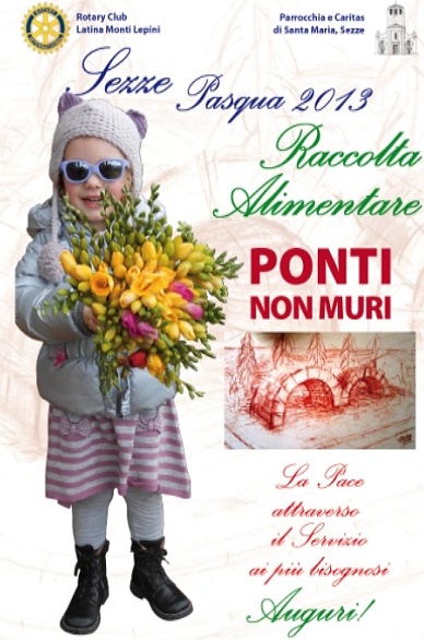 Lepini, desidero ringraziare il Sindaco del Comune di Sezze, il Presidente della Banca Popolare del Lazio, i Dirigenti, i Professori e gli studenti degli istituti partecipanti, e tutti coloro che come “costruttori di ponti” hanno generosamente contributo alla realizzazione del concorso per la promozione della “Pace” per un mondo migliore.