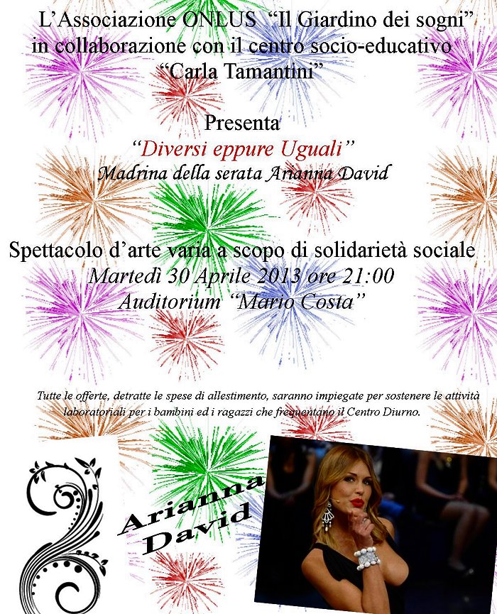della serata è Arianna David. Arianna nasce nella capitale il 3 giugno 1973, sotto la buona stella dei Gemelli. Dopo gli studi al liceo artistico, il suo interesse per il mondo dello spettacolo la porta, nel 1991, a una piccola partecipazione nella fiction Europe Connection trasmessa da Rai Due; l'anno successivo due importanti programmi televisivi – Il grande gioco dell'oca e Acqua calda – la ospitano in veste di soubrette.