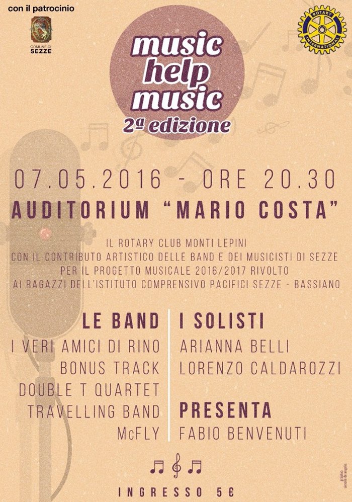 Rotary Club presenta "Music Help Music" 2° edizione Sabnato 7 maggio 2016 alle ore 20,30, presso l’Auditorium “Mario Costa” articolo di Luca Morazzano