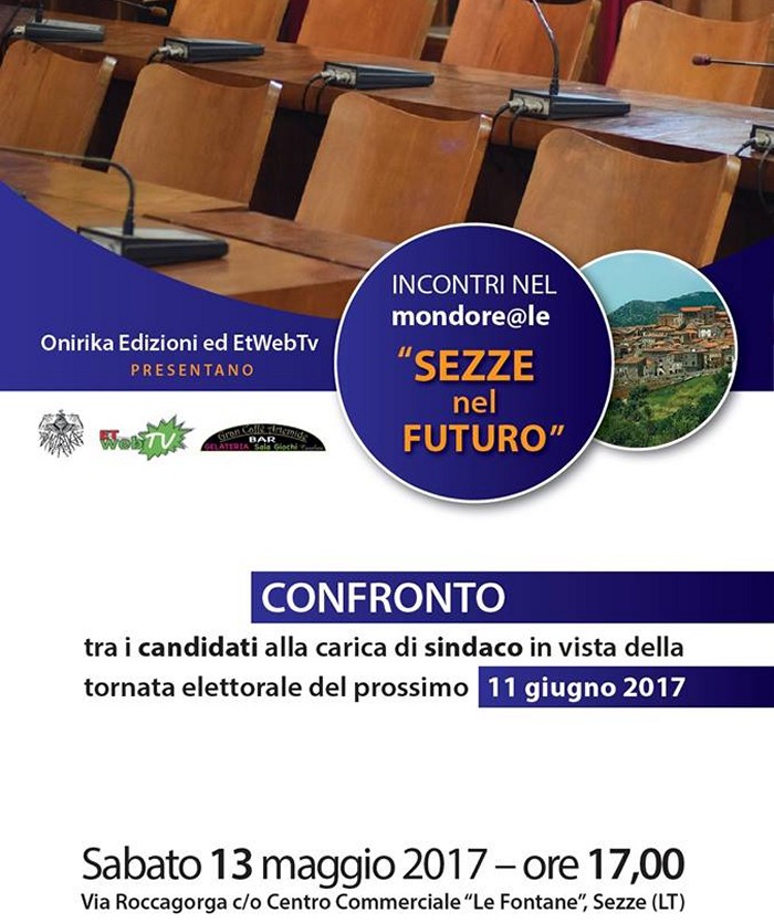 Confronto tra i 7 candidati alla carica di sindaco a Sezze Damiano Risi, Gaetano Leonoro, Rita Palombi, Paride Martella, Roberto Reginaldi, Sergio Di Raimo,Giuseppe Ceritello. pubblicato su MondoRe@le