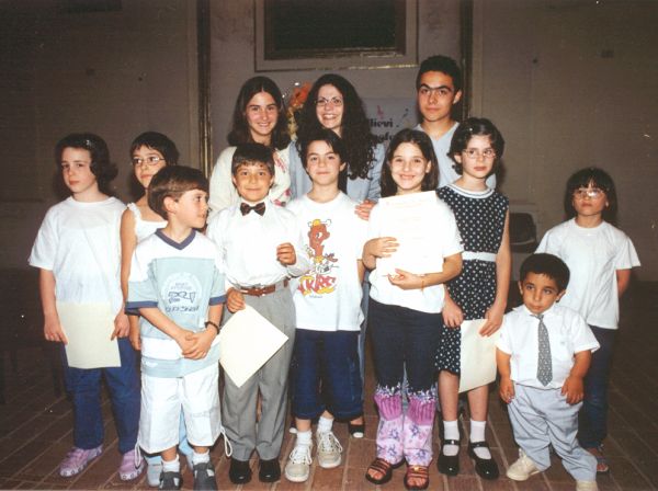 Giovanna Magliocca con alcuni alunni del corso di pianoforte (foto anno 2000) |