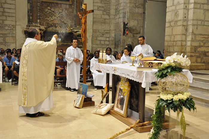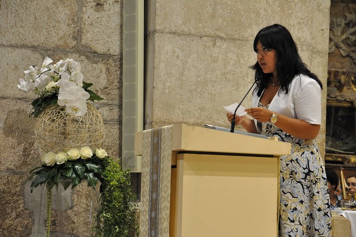 La cerimonia ufficiale per Don Luigi Il nuovo anno pastorale si è appena aperto per la chiesa setina con importanti novità dovute all'avvicendamento di alcuni sacerdoti diocesani disposti dal Vescovo Mons. Giuseppe Petrocchi. Tra questi, Don Giordano Pisanelli che subentra a Don Luigi Libertini quale Arciprete - Parroco della Basilica Concattedrale di Santa Maria in Sezze. Domenica 4 settembre Don Luigi Libertini, dopo otto anni di servizio pastorale a Sezze, ha salutato la comunità di Santa Maria, composta da circa tremila abitanti, da sempre punto di riferimento per la vita eclesiale e culturale di Sezze. La concattedrale romanica, edificata nel XIII secolo, custodisce tra l'altro l'antico Archivio Capitolare e una sede del Museo Diocesano. Tra gli altri fedeli alla cerimonia hanno assistito il Sindaco di Sezze, Andrea Campoli, Titta Giorgi, Ernesto Di Pastina ed il Comandante della Polizia Municipale, Lidano Caldarozzi. Don Luigi Libertini, nativo di Priverno, è stato nominato nuovo Parroco del Santissimo Salvatore di Terracina, una comunità molto ricca e dinamica che saprà apprezzare le doti di sacerdote e di uomo di Don Luigi. Momenti della cerimonia foto di Alessandra Furenci
