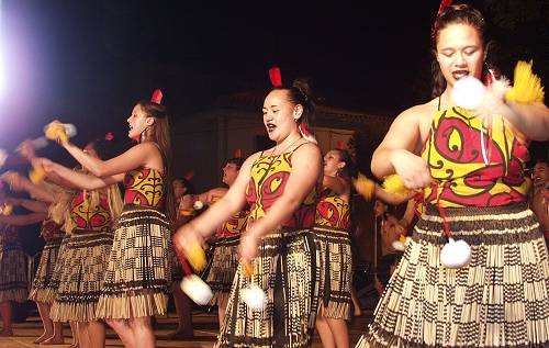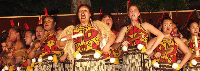 Il gruppo è dal 1985 impegnato nello studio e nell’approfondimento della mimica di ballo, nella composizione gestuale, sia facciale che delle mani e dei piedi, e nella presentazione scenografica di parate da combattimento e/o di scenografici numeri da “circo equestre”. La cultura che sottostà a questo allestimento scenico è quella dei MAORI ( tipica popolazione tribale della Nuova Zelanda ), etnia molto studiata in antropologia ed in etnologia per i complessi significati etnici, di “primordiale sviluppo sociale”, che rischiano di scomparire del tutto al cospetto del civile progresso umano e tecnologico , capitalistico ed “occidentale”. Più di ogni altro gruppo quello neozelandese sembra, sulla scena, non che stia “recitando” un copione di recitazione folcloristica bensì che stiano mettendo in mostra niente altro che se stessi, nelle loro varie manifestazioni “corporee” legate ai vari momenti della loro “vita” sociale. E’ il trionfo dell’Essere nei confronti della finzione scenica! Non esiste alcuna finta maschera capace di coprire le loro maschere facciali…originarie ed autentiche… e le loro esuberanti vocalità!