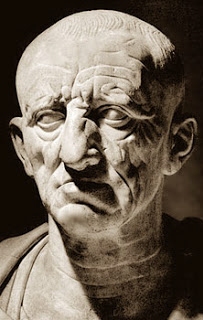 Nel Liber de agri cultura, Catone tratta non solo di come coltivare i campi ma anche di veterinaria e di medicina, di consigli per chi deve acquistare un fondo, di come costruire una villa, un frantoio, un torchio, vi si trovano ricette di cucina, informazioni sui prezzi di mercato, sul modo di mantenere la servitù, su quali devono essere i doveri del padre di famiglia; insomma offre tutte le informazioni per chi vive in campagna e della campagna…non mancano neanche le formule di preghiera per invocare gli dei sull’abbondanza dei raccolti e una buona salute per coltivare i campi. Nello scrivere il De agri cultura, Catone pensa ad una proprietà media di 100 – 250 iugeri, corrispondenti ad una odierna azienda agricola di 25 – 60 ettari; non tratta i vari argomenti in maniera organica e spesso è anche ripetitivo, però l’esposizione è concreta e pratica, la forma semplice e rude. Vediamo un passo a proposito dei doveri di un padre di famiglia: “Quando il capo di una casa va nelle sue terre, appena resi i dovuti omaggi ai Lari tutelari della casa, vada nella medesima giornata, se gli è possibile, a girar per la sua terra, e se proprio non può, lo faccia il giorno dopo; e quando s’è ben reso conto di come il fondo sia coltivato, di ciò che è stato fatto e di ciò che rimane da fare, chiami il villico e chieda a lui quanti lavori siano fatti e quanti ne restino da fare, e se quelli compiuti siano stati fatti a tempo. Osservi il bestiame per accrescerlo; lo venda se il prezzo è buono, come pure l’olio ed il vino in esubero; e venda i buoi vecchi e gli armenti e le pecore malandate, la lana, le pelli, il carro vecchio e la vecchia ferraglia, gli schiavi vecchi e tutto ciò che c’è di superfluo. Il capo di famiglia deve essere pronto a vendere, non a comprare.” Nella vita pubblica percorse tutti i gradi del cursus honorum: fu uomo politico, scrittore, questore, console, pretore, e per ultimo censore. I censori avevano il compito di compilare ogni cinque anni i ruoli dei contribuenti in occasione del censimento, avevano la vigilanza sui lavori pubblici e sui costumi dei cittadini; Catone in questa sua carica represse severamente e con imparzialità ogni forma di corruzione pubblica e privata tanto da valergli l’appellativo di “ censore” che gli rimase per sempre; benché sin dagli inizi del cursus si era caratterizzato come moralizzatore della vita pubblica. Condusse una lotta accanita contro il lusso. Impose pesanti tasse sugli abiti da lusso, sugli ornamenti personali, specialmente delle donne, e sui giovani schiavi comprati come concubini. Successivamente, anche senza più ricoprire cariche, ebbe un enorme prestigio e dominò il Senato. Di carattere tenace e di mentalità conservatrice, fu assertore del nazionalismo, tanto nella vita quanto nella letteratura. Ebbe come direttiva costante la preoccupazione di distruggere Cartagine, nella quale vedeva una rivale della potenza romana…famosa la sua frase Carthago delenda est (Cartagine è da distruggere) a conclusione di tutti i suoi discorsi in Senato. Osteggiò l'introduzione in Roma della cultura e della filosofia ellenica, e, in opposizione ai molti autori romani che scrivevano in greco, compose tutte le sue opere in latino, inaugurando un costume destinato a rimanere costante. In quel mondo in trasformazione, Catone rappresentò la democrazia rurale e tradizionalista e si impegnò sempre accanitamente a difendere le antiche virtù di quelle generazioni, composte soprattutto da agricoltori, che avevano formato la grandezza di Roma. Sezze, 5 agosto 2012