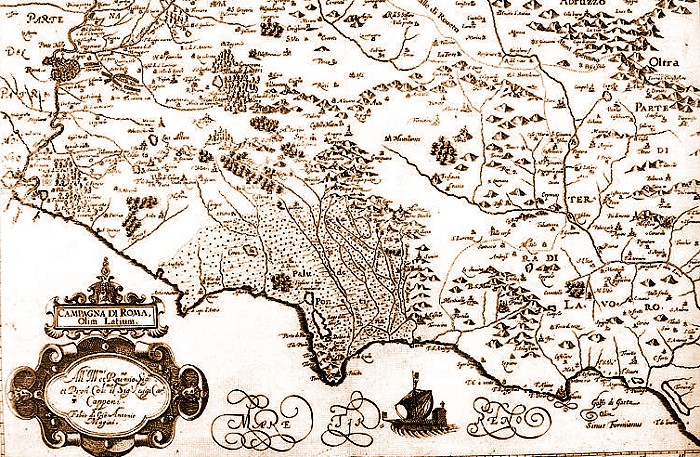 Caetani, ritornò a Sermoneta da Mantova con grande gioia di tutto il popolo che lo accolse festoso alla porta del paese con baci e abbracci. Nella cartina del 1357 sono rappresentate le province della Stato Pontificio di Campagna e Marittima. Campagna e Marittima, in latino Campaniæ Maritimæque provincia, è stata una divisione amministrativa dello Stato Pontificio, estesa, in origine, da Roma e Ostia Antica, poi dai Colli Albani, alla Valle del Liri e a Terracina. In cartografia è anche conosciuta come Campagna di Roma o Latium. Per un breve periodo nell'XV secolo la provincia era divisa amministrativamente in Campagna e Marittima. Terracina e Pontecorvo, seppur incluse nei limiti geografici campanini, avevano delegati pontifici che le governavano autonomamente per tutto il medioevo.