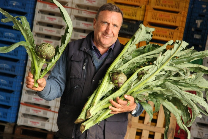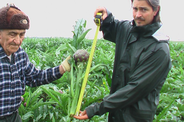 detto Toto, con il figlio Antonio, coadiuvanti nella produzione di carciofi