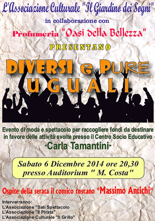 di Giovanni Rieti Il secondo per la freschezza della proposta moda rivolta alla clientela più giovane. Diversi i momenti che animeranno la serata. Il clou sarà l'esibizione del comico toscano Massimo Antichi. Nato a Vergaio, il paese di Roberto Benigni, del quale si definisce allievo. E' il più irruente ed irriverente dei comici toscani con frequenti ed improvvisati dialoghi con il pubblico. Ha studiato artisticamente al Centro Studi di Firenze. Ha fatto parte per tre anni del gruppo di Vernice Fresca diventato poi Aria Fresca. E' stato ospite in varie puntate del Costanzo Show ed ha partecipato ai film di Benigni, Tutto Benigni e Johnny Stecchino. I momenti dedicati alla danza saranno affidati all'ASD "Sati Spettacolo" con le allieve Alessia Cipolla, Silvia De Nardis, Manuela Ruocco, Jessica Serecchia, Angela Terella, Cristiana Angelini Iris Marchetti, Giancarla Rossi, Giorgia Ciotti, Sabrina Ruocco e al canto la giovanissima Asia Leva, mentre per tra gli allievi della scuola "Il Grillo" saranno Arianna Belli, Francesco Caldarozzi, Lorenzo Caldarozzi, Gianluigi De Renzi e Sara Piccaro ha incantare la platea con le loro voci. Infine l'ASD "Il Pirata" presenterà un resoconto delle tante vittorie che i suoi atleti hanno ottenuto nei vari trofei ciclistici giovanili. L'evento sarà presentato da Alessandro Grossi e Laura Marchetti. In concomitanza con l'apertura delle manifestazioni inserite nel calendario del "Natale Setino" vale la pena ricordare come il contributo di queste serate sia di fondamentale importanza per continuare a portare avanti le attività socio educative all’interno del centro diurno "Carla Tamantini". Di qui l'invito a non far mancare il supporto a questa manifestazione per dimostrare l'alto senso di solidarietà che da sempre contraddistingue il popolo setino.