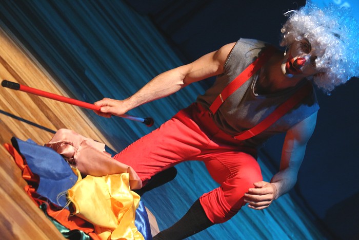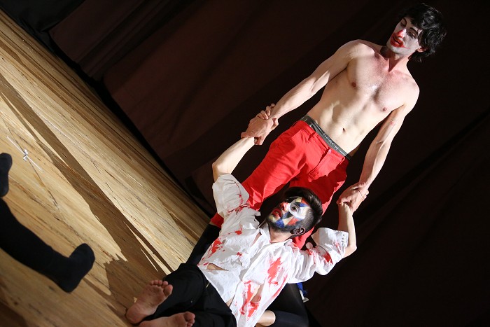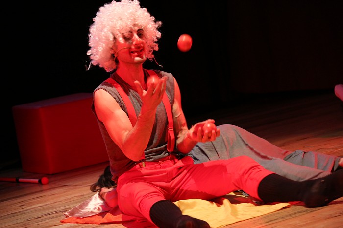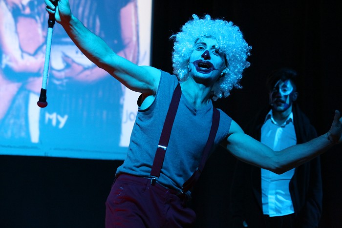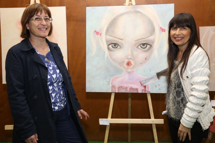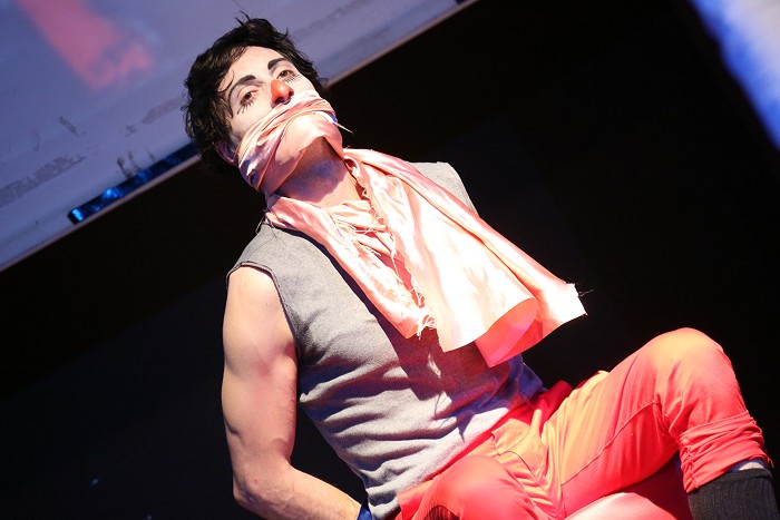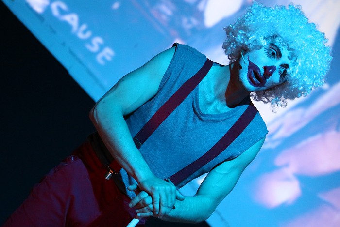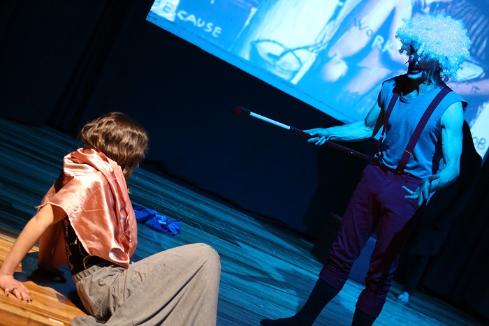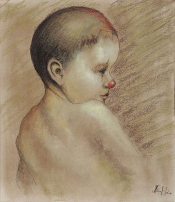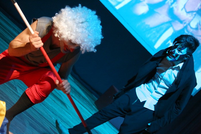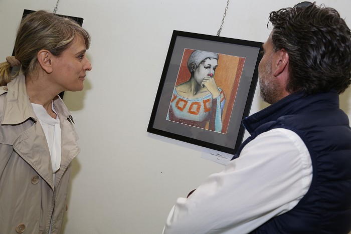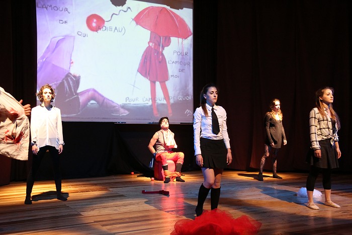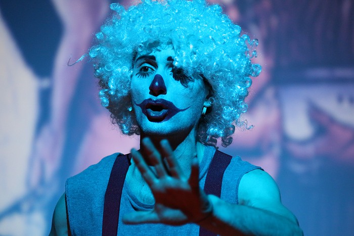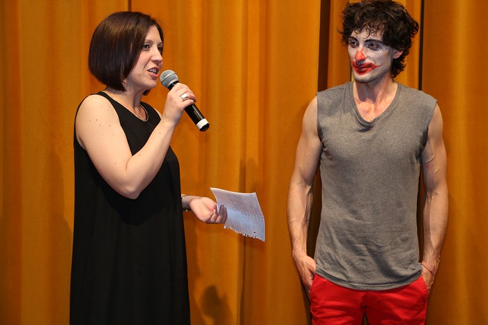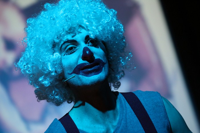 loro concerto. Il Foyer dell’Auditoriom “Costa” ospiterà l’esposizione di alcuni dipinti degli artisti Alessandra Montesi e Silvio Sangiorgi. Mentre i quadri della pittrice Margherita Baratta saranno invece proiettati nello spettacolo facendo il paesaggio emotivo delle scene. L’esposizione esterna traccerà un percorso che unisce l’espressione dei quadri con il percorso espressivo ed emotivo dei personaggi in scena. Infatti Abbiamo un collegamento evidente con i due protagonisti dello spettacolo “Il Clown” e “Renata”. I sette dipinti di Silvio Sangiorgi rispetteranno cronologicamente l’evoluzione del personaggio “Clown” dalla sua nascita , con il quadro “Il piccolo Ercole” (bambino con naso, occhi e bocca da clown, foto sopra), momento in cui nasce già segnato dalle convinzioni socio – culturali di genere, fino al quadro “ Clown allo specchio” che raffigura il cambiamento dell’uomo, che guardandosi alle specchio, al termine della sua riflessione, vede una donna col suo stesso costume, a rappresentare la rivelazione della parità che aveva sempre negato. Altrettanto varrà per i quadri di Alessandra Montesi che con le sue opere tutte al femminile, di emozioni femminili, rifletteranno l’evoluzione artistica del personaggio “Renata”(foto sopra” I LOVE SCHOCKING” ). Quindi una completa sinergia tra palcoscenico e foyer. Infine una esposizione di foto scattate da giovani fotografe, Magda Marconi e Giulia Tresca, in sala prove e posa. Apriranno lo spettacolo gli allievi di danza della scuola d’arte Gokuy Okuden di Sezze Scalo con coreografie a tema.