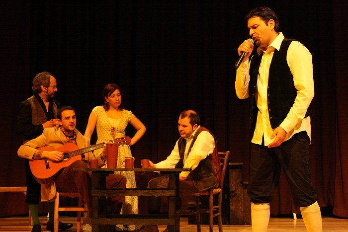 spettatore, anzi miscelando la recitazione con la danza e con il canto, lo