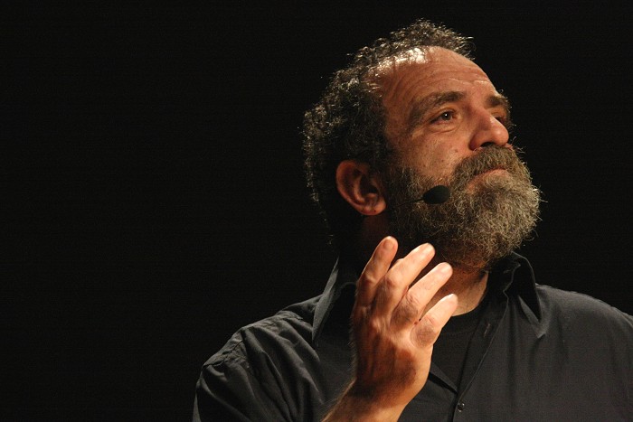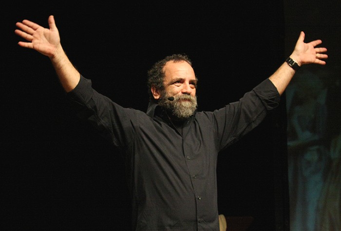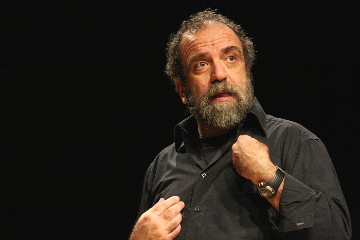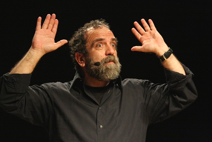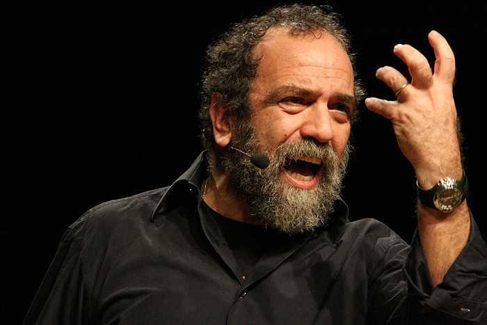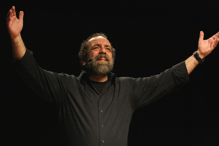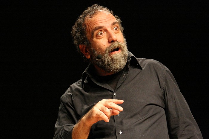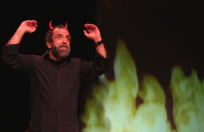 con la sua spietata comicità "sociale" con lo spettacolo