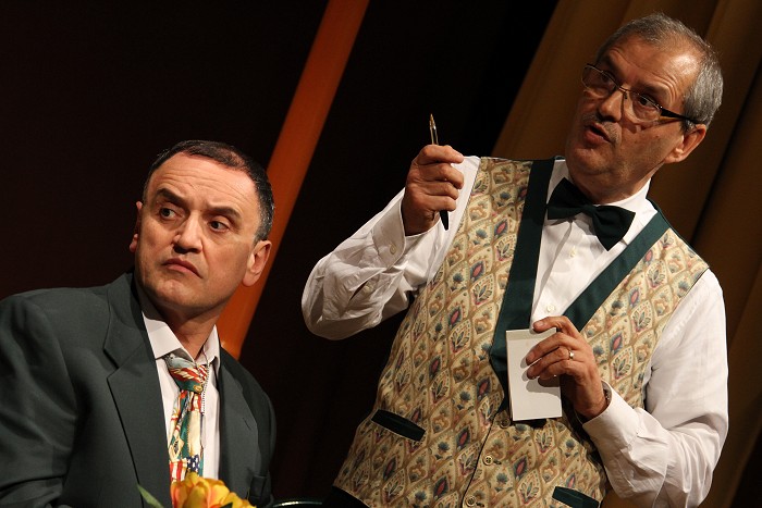 Inoltre sarà anche rappresentato Dramma al bar di Achille Campanile. La regista Annamaria Ricci presenta così il suo lavoro: «Abbiamo voluto in questo spettacolo dedicare uno spazio all’indimenticabile Achille Campanile; i due autori, distanti sia nel tempo che nel carattere, hanno in comune un tipo di comicità surreale e fantastica legata alla parola, al significato ed all’uso che ne fa. Assisterete all’umanizzazione delle macchine a fronte della disumanizzazione dell’essere umano, al commovente sogno di un muratore, al litigio di due coniugi alquanto “nervosi”, alle disgrazie di una strega ormai in decadenza. Non potrete che condividere le considerazioni di una dignitosa topastra e vi stupirete dell’arguzia di un invadente barman».