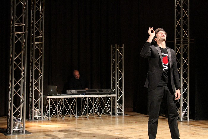 L'attore di vecchia scuola continua a sentirsi la scena attorno, invece non ci sono che lui e gli spettatori. Questo è un primo piano shakespeariano, è un primo piano cinematografico. La musica e i suoni sono determinanti in un progetto che preveda una sorta di invasione cinematografica. Ci sono effetti sonori digitali e suoni campionati che devono aiutare a creare atmosfere. Tutti i suoni e le musiche sono eseguiti dal vivo, così come i canti. Oltre al musicista, in scena, è presente una cantante che in più di un'occasione interagisce con il nostro attore. Ha la funzione di creare raccordi, di introdurre nuovi temi, è a volte interlocutrice e destinataria di racconti, monologhi o dei Sonetti.