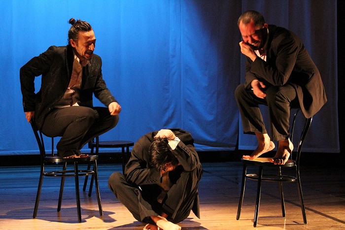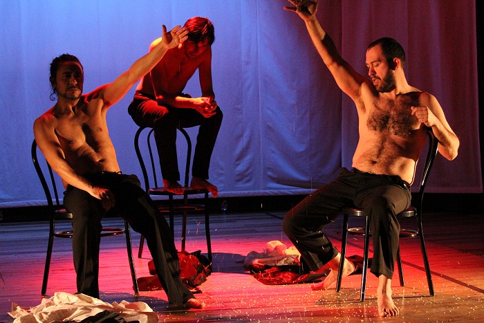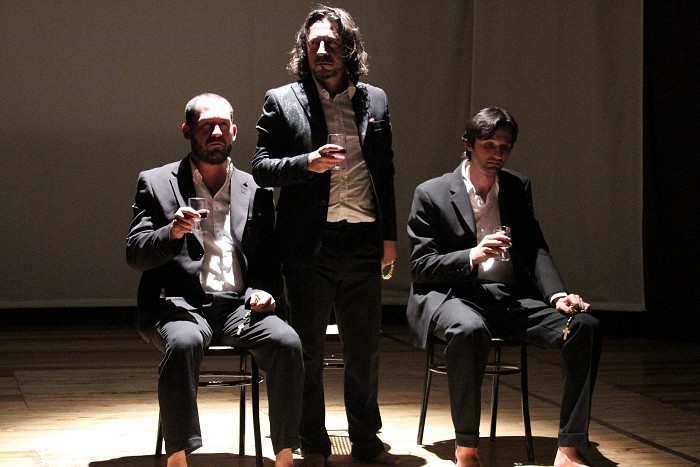 Una messa in scena essenziale, caratterizzata dal suono di questo fiume che scorre sotto la strada, a pochi passi dal luogo dove i tre fratelli si ritrovano, come in un limbo, a condividere i pensieri e le riflessioni in una sorta di confessione/espiazione, nell'ultimo tentativo di fare luce su una vicenda che inevitabilmente ha segnato la loro vita prima e la loro morte dopo.