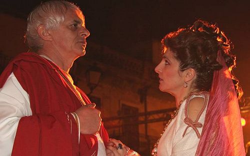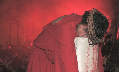Sempre in Piazza IV Novembre si è fatto ricorso, come non era mai accaduto in precedenza, ad un sofisticato sistema di luci, fumi e musiche allo scopo di ricreare atmosfere suggestive. Graditissimo il ritorno, per il secondo anno, di Franco Oppini che ha interpretato Pilato affiancato dalla bravissima Olga, mentre molto apprezzata la presenza di Sara Zanier, modella e attrice di Latina, nei panni di Maria di Magdala. Tra i figuranti, che quest’anno hanno dato vita alla Sacra Rappresentazione, mi sembra opportuno segnalare la presenza di 10 romeni. Un segno dei tempi di inequivocabile integrazione. Un naturale processo sociale che sfugge alle facili analisi di recente pubblicate sul settimanale Panorama.