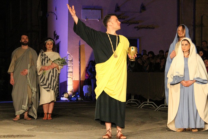 « Tre giorni dopo, ci fu una festa nuziale in Cana di Galilea, e c'era la madre di Gesù. E Gesù pure fu invitato con i suoi discepoli alle nozze. Venuto a mancare il vino, la madre di Gesù gli disse: "Non hanno più vino". Gesù le disse: "Che c'è fra me e te, o donna? L'ora mia non è ancora venuta". Sua madre disse ai servitori: "Fate tutto quel che vi dirà". C'erano là sei recipienti di pietra, del tipo adoperato per la purificazione dei Giudei, i quali contenevano ciascuno due o tre misure. Gesù disse loro: "Riempite d'acqua i recipienti". Ed essi li riempirono fino all'orlo. Poi disse loro: "Adesso attingete e portatene al maestro di tavola". Ed essi gliene portarono. Quando il maestro di tavola ebbe assaggiato l'acqua che era diventata vino (egli non ne conosceva la provenienza, ma la sapevano bene i servitori che avevano attinto l'acqua), chiamò lo sposo e gli disse: "Ognuno serve prima il vino buono; e quando si è bevuto abbondantemente, il meno buono; tu, invece, hai tenuto il vino buono fino ad ora". Gesù fece questo primo dei suoi segni miracolosi in Cana di Galilea, e manifestò la sua gloria, e i suoi discepoli credettero in lui. »