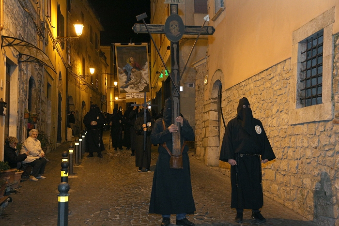 processione inizia con le Confraternite seguite dal Cristo morto e dalla Madonna dell’Addolorata cui fa da corona il canto delle pie donne è quella liturgica ed è la più antica.
