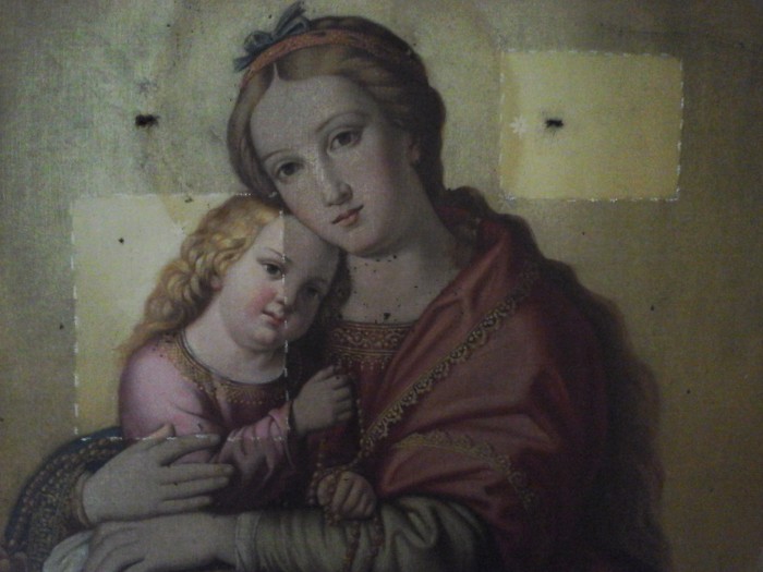 Nelle immagini che seguono due fasi della tela durante il restauro
