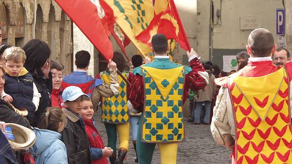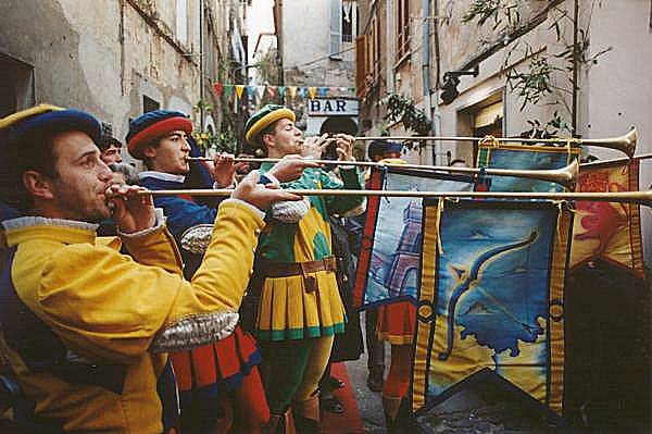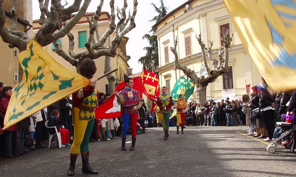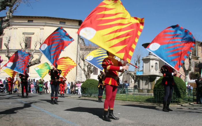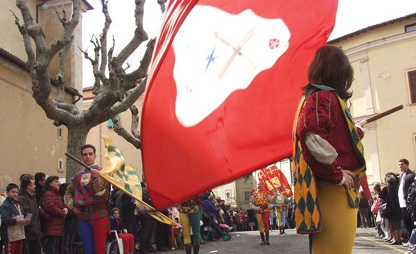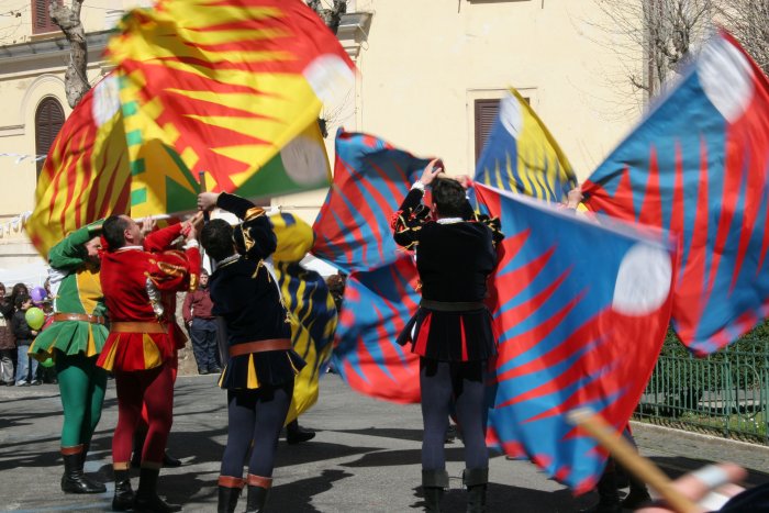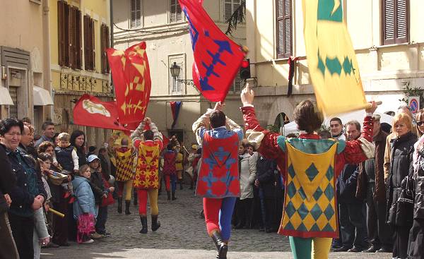 "Storici sbandieratori delle contrade" di Cori Esibizione pirotecnica in via San Carlo, anno 2001