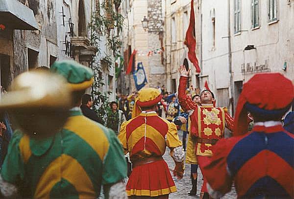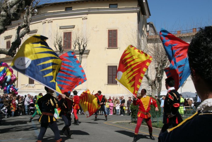 Sbandieratori "Rioni di Cori" Esibizione in piazza De Magistris, anno 2004