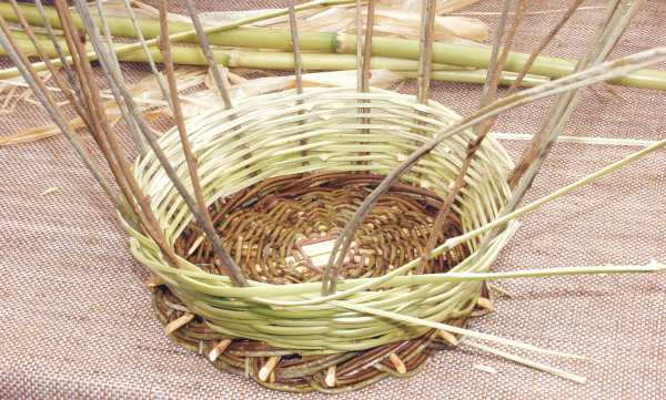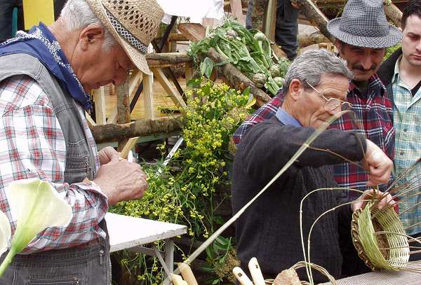 Momenti della lavorazione per realizzare cesti di vimini e semplici flauti detti "cifali"