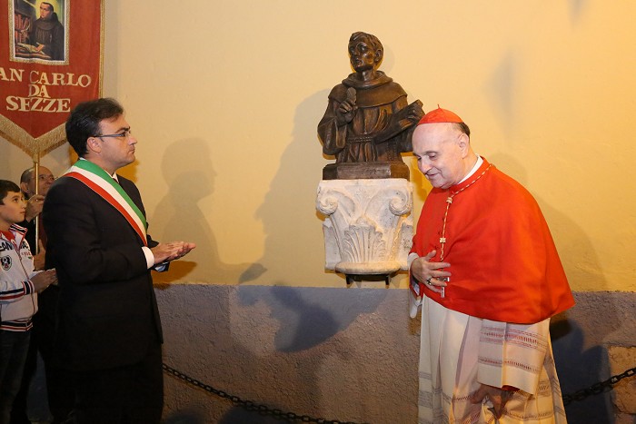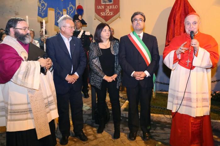 Il sindaco di Sezze insieme al cardinale Comastri scoprono il busto di San Carlo