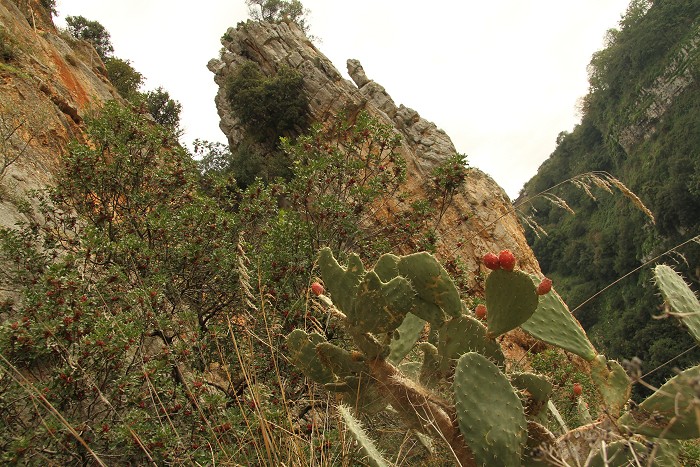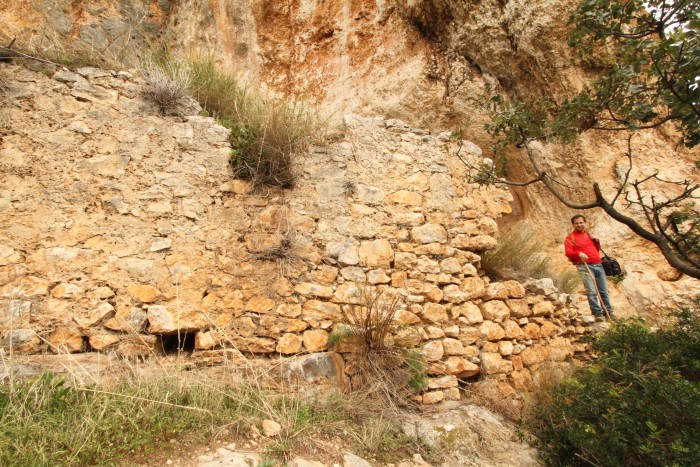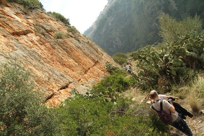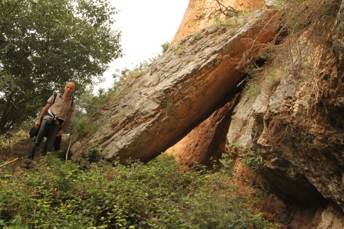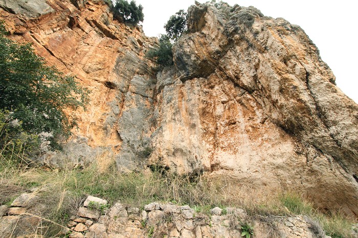 la rossa parete a picco sulla fenditura del Riparo Roberto