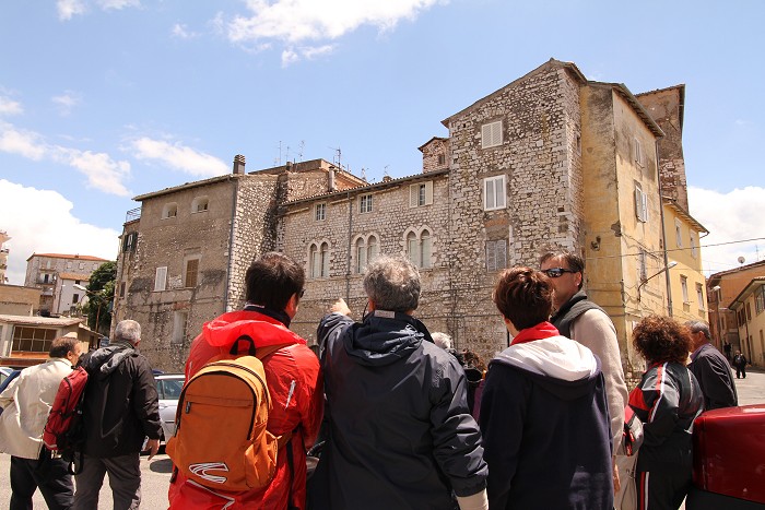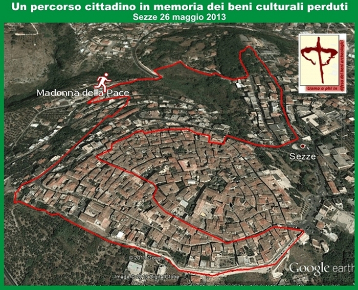 attraversando il centro storico di Sezze e seguendo le tracce delle mura poligonali ancora visibili.