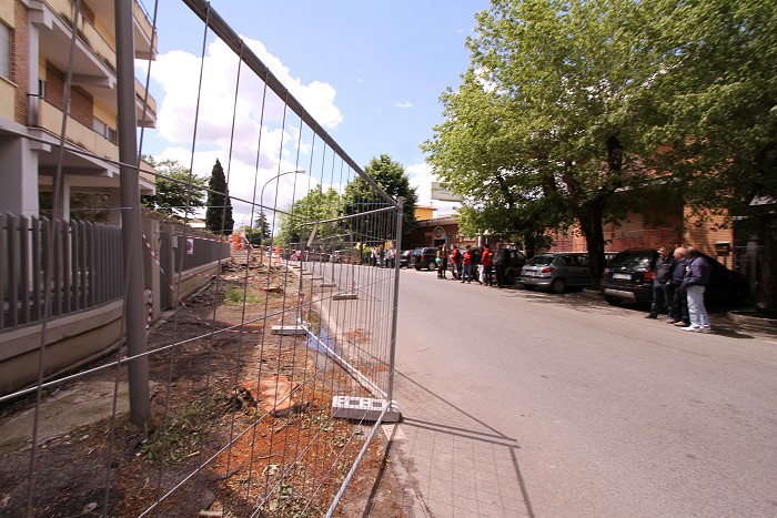 Descrizione del percorso Da qui inizia l' Area sacra di età romana dove si incontra un’altra opera incompiuta. Un marciapiede che da Crocevecchia avrebbe dovuto raggiungere Madonna della Pace, e che invece si è interrotto perché durante i lavori è stata rinvenuta una tomba di epoca romana. Da notare che quest’area sacra è segnalata in tutti i testi sia antichi che moderni a cominciare dal Lombardini. Fra l’altro l’illuminazione del marciapiede è posizionata al centro dello stesso diventando