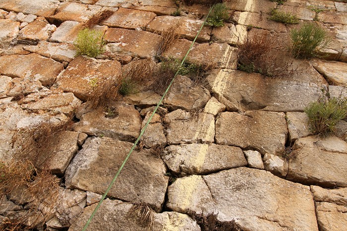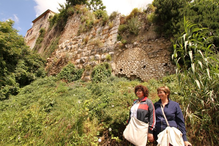 Sulle mura di epoca romana, nel tratto più maestoso alto circa 10 metri, cola la vernice di lavori recenti