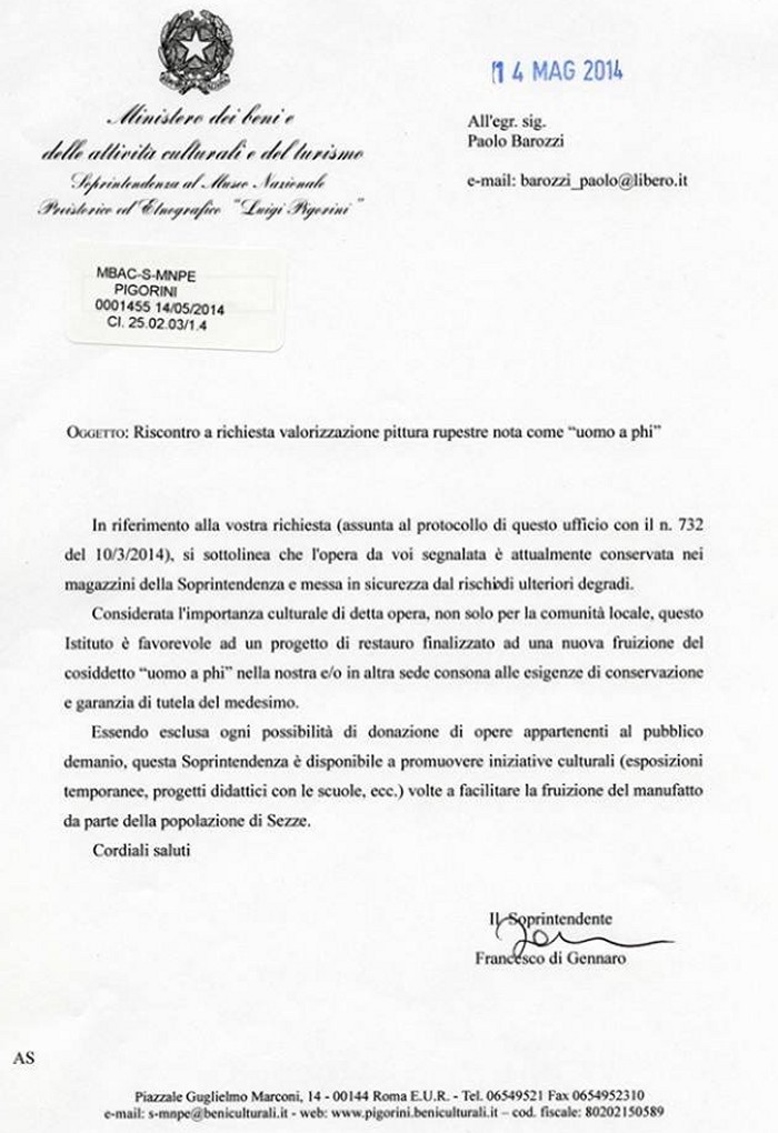 direzione del museo Pigorini ha risposto con una lettera (riportata quì
