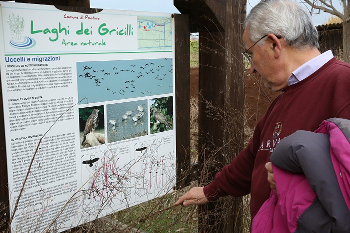 I laghi dei Gricilli a cura di Vittorio Del Duca L’area, che in molti chiamano ancora “Triciglia”, ricade nel territorio di Pontinia ed è importante perché rappresenta la realtà locale prima della bonifica. È un paesaggio unico nel suo genere, che conserva ancora intatte le sue peculiarità naturalistiche e il carattere paludoso e umido, tanto da essere classificato dalla Comunità Europea come Sito di Importanza Comunitaria (SIC). Le acque dei laghi sono fortemente mineralizzate per la presenza di alti tenori di anidride carbonica e di composti dello zolfo, ben percepiti dall’olfatto anche dai viaggiatori che transitano nella limitrofa ferrovia Roma –Napoli. Interessante la concentrazione in uno spazio così ridotto di acque solfuree e di acque dolci, riscontrabili in Italia solo nelle sorgenti di Tivoli e delle Terme Cutilie (VT) e che cambiano di colore e di intensità in base alla luce ed alla differente composizione chimica. Definire queste acque “dolci” è improprio, mentre sarebbe più corretto definirle “ leggermente solfuree”. La differenza di concentrazione tra acqua “zolfa” e quella “ leggermente zolfa” sono la conseguenza della diversa disposizione degli elementi tettonici che condizionano la risalita di fluidi mineralizzati profondi, in tutta l’area. Non meno importante la flora, che conserva ancora nel suo habitat naturale specie acquatiche come la "lenticchia d'acqua" e idrofiti radicanti del genere "la lengua d'oca" (Plantago lanceolata), oppure la fauna con rari esemplari di “testuggine palustre europea”, di uccelli come il “martin pescatore”, il “falco di palude”, il “beccapesci”, il “tarabusino” e tra i pesci la commestibile “rovella” ed altri pesciolini minori, in particolare del genere Cobitis, usata un tempo come esca per pescare nella palude. L’area dei Gricilli occupa un bacino di circa 10 ettari ed è attraversata dal “Diversivo Ufente”, un canale che permette alle acque sorgive, che un tempo causavano estesi allagamenti durante le piogge, di poter defluire con una idrovora nel vicino fiume Ufente. E’ possibile ancora osservare il fenomeno della fossilizzazione delle canne palustri, dovuto all’acqua sulfurea in cui sono sommerse. Ai margini dell’area, poco discosti, si notano i ruderi di Castel Valentino, che hanno dato il nome ad uno dei laghi d’acqua dolce e ad una moderna oasi di ristoro. Sono probabilmente i resti di un antichissimo “castrum”, opera di fortificazione e difesa, ritenuto da qualcuno di origine volsca.