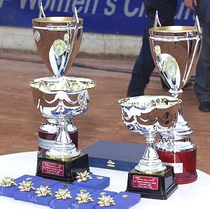 I trofei esposti nella finale del singolo |