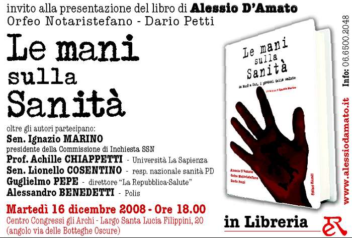 2008 Lunedì 18 febbraio 2008 alle ore 11,00 presso la sede del Consiglio regionale del Lazio, Sala Mechelli - ROMA - via della Pisana, 1301 verrà presentato il libro “Lady Asl; La casta della Sanità. Fatti e misfatti” di Alessio D’AMATO e Dario PETTI - Editori Riuniti Segreteria: 06 65002048 / 06 65937174 Saluto di Guido MILANA, Presidente del Consiglio regionale del Lazio Ne discutono con gli autori Luigi CANALI, Presidente Commissione Sanità Mario DI CARLO, Consigliere regionale Enrico FONTANA Consigliere regionale Giuseppe SCARAMUZZA, Segretario regionale Cittadinanzattiva - TdM Riccardo SONNINO, Medico Associazione Antea Coordina Francesco DI FRISCHIA, giornalista Corriere della Sera 31
