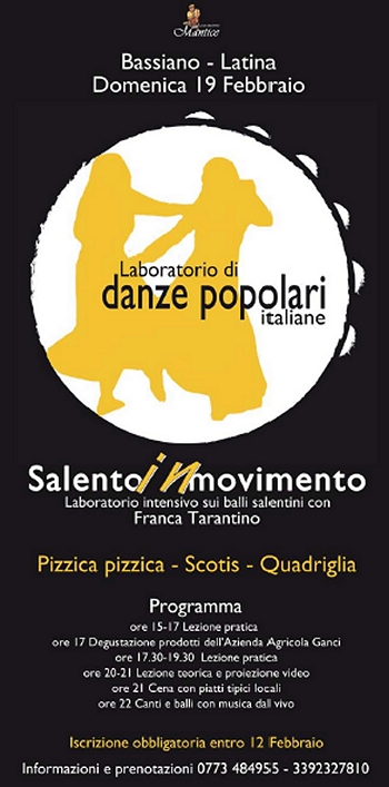 tipici dei monti Lepini e a seguire canti e balli con musica dal vivo. Il costo promozionale del laboratorio