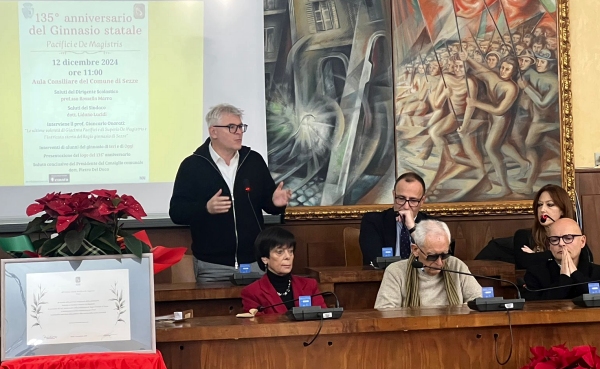 Il 12 dicembre 2024 si è celebrato presso l'Aula Consiliare del Comune di Sezze il 135° anniversario del Ginnasio Statale "Pacifici e De Magistris". L’iniziativa ha riunito studenti, docenti, ex alunni e rappresentanti istituzionali in una mattinata densa di emozioni e ricordi, simbolo del forte legame tra la scuola e la comunità locale. Un momento particolarmente suggestivo è stato l’intervento del professor Pietro Bernabei, attualmente assessore ai Lavori Pubblici del Comune di Sezze ed ex studente del liceo. Il suo racconto ha riportato i presenti indietro nel tempo, tracciando la quotidianità di uno studente degli anni ’50. Con tono coinvolgente, ha descritto la camminata mattutina da casa sua fino alle scuole Rappini, all’epoca sede del liceo, un percorso accompagnato dagli odori familiari del forno all’alba, che diffondeva nell’aria il profumo invitante del pane fresco. Ha rievocato, con un velo di nostalgia, anche la cartolibreria dove acquistava quaderni e cancelleria, un luogo che per lui rappresentava la porta verso la conoscenza e l'istruzione. Ad arricchire la celebrazione sono stati anche gli interventi di due studenti del ginnasio attuale. Attraverso i loro racconti, hanno tracciato un parallelo tra il passato e il presente, condividendo l’orgoglio di appartenere a una tradizione scolastica così radicata e significativa. I loro contributi hanno testimoniato la vitalità del Ginnasio, capace di mantenere saldo il ponte tra le generazioni. La celebrazione ha poi offerto un momento di riflessione storica grazie al professor Giancarlo Onorati, che ha approfondito la storia del lascito di Giacinta Pacifici e di Superio De Magistris. Il suo intervento ha evidenziato le complesse vicende che hanno portato alla fondazione del Regio Ginnasio di Sezze, sottolineando come la volontà di queste figure visionarie abbia gettato le basi per un’istituzione educativa di grande rilevanza. La mattinata si è aperta con i saluti della dirigente scolastica Rossella Marra, seguita dal sindaco di Sezze, Lidano Lucidi, che hanno sottolineato l’importanza di questo anniversario per la città. Particolarmente apprezzatra anche la presenza della ex dirigente scolastica Anna Giorgi, il cui intervento ha dato un ulteriore tocco di familiarità e senso di continuità all’evento. Tra i momenti più significativi c’è stata la presentazione del nuovo logo realizzato per celebrare i 135 anni della scuola, un simbolo che racchiude la storia e il futuro dell'istituto. La cerimonia si è conclusa con il saluto del Presidente del consiglio comunale, Pietro Del Duca, che ha ringraziato tutti i partecipanti per aver reso omaggio a questa importante ricorrenza: “Possiamo affermare che il “sogno” di Giacinta e di Superio si è avverato, non solo perché siamo qui a ricordare il loro operato, ma perché siamo testimonianza di un sistema scolastico che ha formato decine e decine di generazioni. Possiamo essere realmente fieri delle nostre istituzioni scolastiche che portano ancora oggi il nome dei nostri concittadini benefattori. Il rapporto scuola-società è sempre attuale e questi elementi sono a mio avviso legati tra di loro in modo imprescindibile. La scuola – ha concluso il presidente del consiglio comunale di Sezze – deve essere aperta ad ascoltare, osservare e rispettare il modo di vivere e di pensare dei ragazzi. Deve accogliere le idee che provengono dalle loro menti, le loro necessità, senza però perdere di vista l’obiettivo principale della sua professione: quello di insegnare ed educare”.