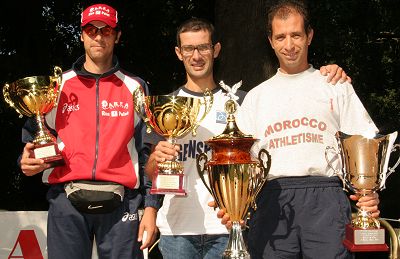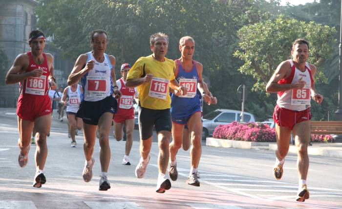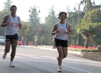 00:48:00.45 LEONCINI PATRIZIA, prime delle donne il Commento di Fratarcangeli Roberto La nostra città ha ospitato, domenica 16 ottobre, il Quarto Trofeo Città di Sezze, gara podistica di 11.000 km organizzata dall’Atletica Setina. La splendida giornata di sole ha visto schierati sulla linea di partenza ben 170 atleti provenienti da tutta la regione Lazio. La gara, partita alle 9:30 dal Parco dei Cappuccini, si è snodata, per i primi chilometri, lungo le vie del centro storico. L’andatura non troppo esasperata consentiva al gruppo di atleti di rimanere compatto fino all’imbocco di via Variante, dove Massimiliano Giorgetta (Latina Runners), sfruttando le sue doti di discesista, dava una scossa alla gara tentando uno dei suoi fenomenali allunghi e riuscendo così a fare una certa selezione. Romeo Venditti (Atletica Frosinone), Rachid Erradi (Podistica dei Fiori), Roberto Fratarcangeli (Atletica Setina), Giuliano Baccani (Area) e Di Lenola Fabio (Atletica Latina), con non poca fatica, rimanevano nella scia di Giorgetta. Finita la discesa, in corrispondenza di via Roccagorga, Erradi e Venditti prendevano la testa della gara mentre dietro di loro si consolidava il terzo posto di Giuliano Baccani (Area) seguito da Giorgetta e Fratarcangeli. Lungo la salita di Via Mattatoio, Erradi riusciva a staccare Venditti e a giungere solitario al traguardo (posto all’interno del Parco dei Cappuccini). Venditti e Baccani andavano a completare il podio con, rispettivamente, la seconda e terza posizione. Intanto Giorgetta e Fratarcangeli subivano, presso Porta Romana, il ritorno di Giovanni Agnoni (Atletica Old Devils). Fratarcangeli rispondeva all’attacco e con un lungo sprint, lanciato già da Ferro di Cavallo, riusciva a giungere al quarto posto precedendo così nell’ordine Agnoni e Giorgetta. La gara femminile vedeva l’affermazione di Patrizia Leoncini (Atletica Alatri 2001 I Ciclopi) seguita da Simona Vicaro (Atletica Setina) e da Marina Piattella (Latina Runners). La manifestazione è stata ancor più impreziosita dalla partecipazione degli atleti della Mountain Freedom capitanati da Daniele Nardi, appena tornato dall’Hymalaia dov’è riuscito nella straordinaria impresa di conquistare, dopo l’Everest (lo scorso anno), lo Shisha Pangma. L’avvenimento sportivo, ottimamente preparato dall’Atletica Setina, ha visto sicuramente ripagato l’impegno profuso, senza risparmio, da Agostino Nardi, presidente dell’Atletica Setina, e dai suoi collaboratori. L’ottimo riscontro numerico dei partecipanti consolida, dunque, una manifestazione sempre difficile da preparare ma piena di soddisfazione per i colori di Sezze. Si spera che l’associazione setina riesca, negli anni avvenire, ad organizzare di nuovo questo splendido momento sportivo.