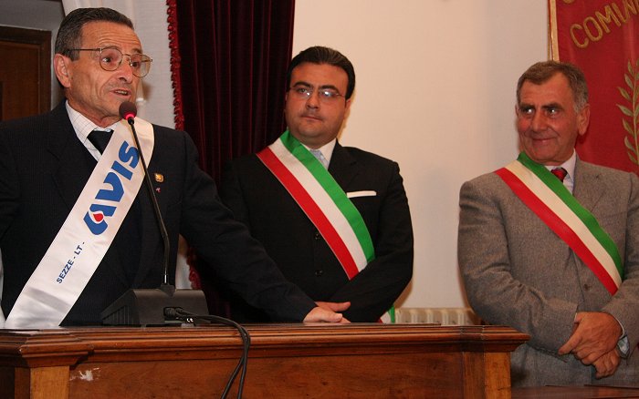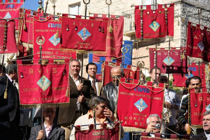 di Ignazio Romano Ore 7,30 di sabato 11 ottobre, da Sezze parte il pulman dell'Avis alla volta di Ruvo di Puglia, paesino di 26.000 abitanti in provincia di Bari, per un nuovo gemellaggio che si concluderà nella giornata di domenica 12. Alla guida c’è il Presidente dell’Avis Comunale, Ubaldo Brandolini, che come sempre ha organizzato tutto nei minimi particolari, con lui tra gli altri donatori ci sono il Sindaco di Sezze , Andrea Campoli, e l’Assessore alla Cultura, Remo Grenga. Ore 17,00 - La comitiva setina viene accolta dal Presidente dell'Avis Comunale Damato Salvatore e dal primo cittadino di Ruvo di Puglia Ing. Michele Stragapede.