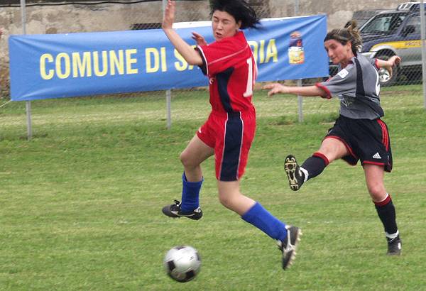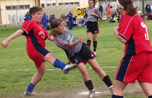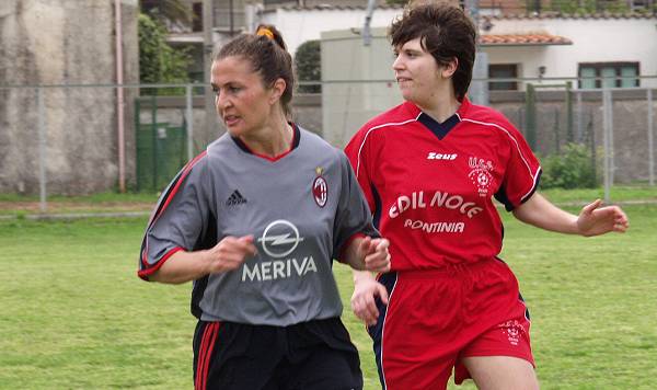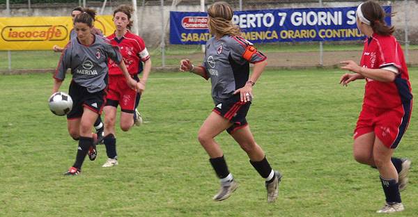 ACF Milan 4 UCF Sezze 0Alle 16,30 sono scese in campo le ragazze del Milan che hanno affrontato per prima l’UCF Sezze. Patrizia Panico e compagne non hanno avuto nessuna difficoltà ha prevalere sulle setine, portandosi in vantaggio al 7’ con una girata al volo del capitano Zambetta. Al 15’ toccava alla Balducci depositare alle spalle dell’incolpevole Iacoboni. L’incontro è stato molto gradevole, e le rossonere hanno fatto sfoggio di classe mostrando triangolazioni veloci e lanci di precisione, in particolare la Panico, osservata speciale, ha dato lezione di grande calcio regalando alle rossoblu la possibilità di fare preziosa esperienza. Il terzo goal rossonere giunge al 19’ sempre ad opera di Annalisa Zambetta che, appostata a centro area, realizza così la sua doppietta. Ad arrotondare il risultato per il Milan arriva l’autorete di Amelia Castelli che, nel tentativo di mettere in angolo, trafigge il portiere setino.