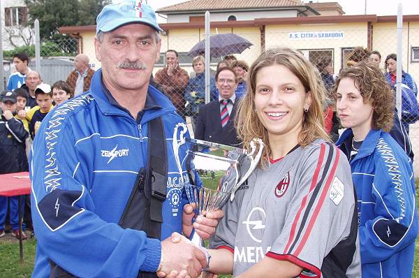 Conti Vincenzo Ringraziamo Antonio Nania (nella foto mentre premia il capitano del Milan) che ha voluto premiare una disciplina sportiva spesso inspiegabilmente dimenticata in provincia di Latina; stampa, TV locali e amministrazioni comunali poco sensibili ed anche poco lungimiranti, politiche statiche ed ingiuste nei confronti di uno sport dai grandi valori e contenuti sportivi. Valori quasi assenti nella stessa disciplina maschile che, più corteggiata e spesso causa di incidenti e violenze, è seguita dagli organi d'informazioni che ne riportano quasi normalmente gli episodi di violenza come fossero cronaca sportiva.