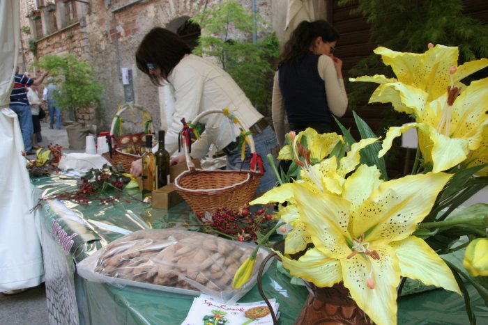 si incontrano il pane, l'olio, i vini, le olive, i carciofini di