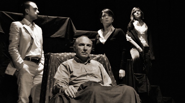 nessuno e centomila adattamento teatrale di Giancarlo Loffarelli dal romanzo di Luigi Pirandello con Giancarlo Loffarelli, Marina Eianti, Luigina Ricci, Emiliano Campoli regia Giancarlo Loffarelli audio Armando Di Lenola; luci Fabio Di Lenola; sartoria Bi.Mi (Roma); trasporti AcLc