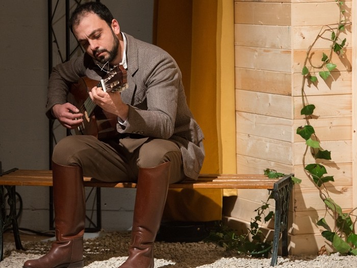 Intensa la musica originale per chitarra, composta dal maestro Paolo Giusti ed eseguita in scena dal vivo. Originale l’impianto scenografico di Mario Tasciotti che porta il pubblico quasi a spiare gli attori che interpretano i propri personaggi davanti e dietro l’imponente struttura in legno.